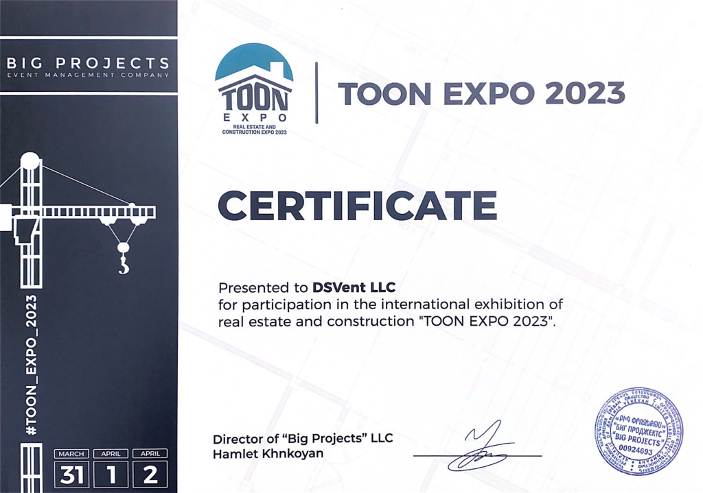 Специалисты компании DSVent приняли участие в выставке “Кавказ строительство и реконструкция EXPO 2023”. Представили инновационные решения, установили ценные связи с клиентами и партнерами. Получили положительные отзывы и открываем новые перспективы развития